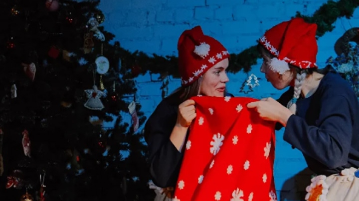 Живое музыкальное сопровождение спектакля – гитара. С поздравлением от Дедушки Мороза и Снегурочки.